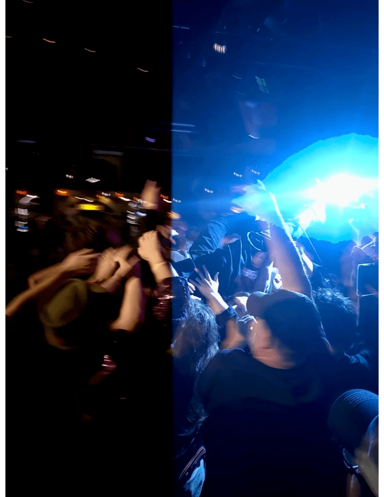 Illuminated by the irrational flair of plum colored stage lights, a slight figure emerged against the milieu of surging bodies and straining instruments. Clad in some form of sailor costume, the faceless waif appeared from the rightmost corner of the stage, sprinted toward the roiling crowd, planted their feet like an olympic gymnast, and leapt into the cauldron of sweat. Though observation of previous divers would affirm a person–especially one of their stature–would float on the surface, a small part of me still expected the figure to slip right through the masses’ outstretched limbs. Instead they balanced with ease, surfing the crowd with the calm air of someone at their home shorebreak, until they were placed lightly on the ground at the opposite end of the venue. Before I could begin to comprehend the spectacle before me, the figure had sliced their way back through the knotted bodies and disappeared past me through the stage’s side entrance. It was magic.