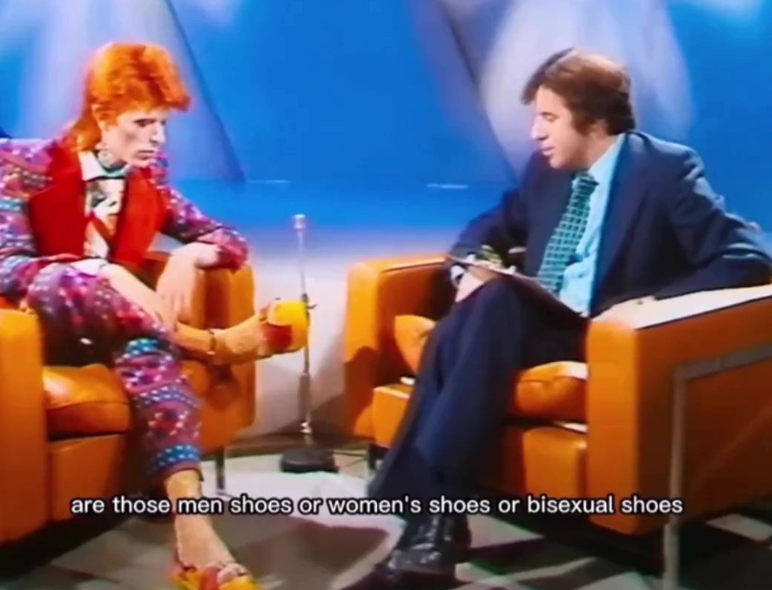 In a 1972 interview with Russel Harty, Bowie was questioned on his choice of clothing, “Right and how about the shoes? Are those mens shoes or women’s shoes? Bisexual shoes?” Bowie simply replied “They’re shoe-shoes, silly.”